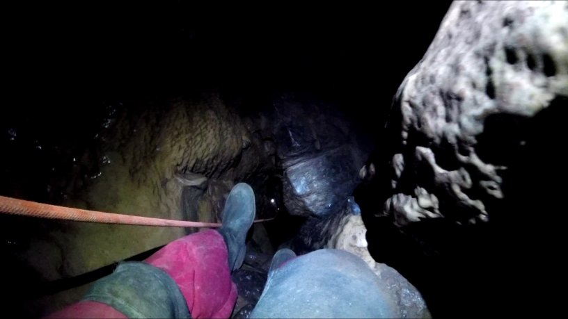 With a name like this it really inspires confidence, like literally climbing into your own grave. After a brief explanation of the geology of the part we are about to climb down our instructor ties off a rope at the top of this and we climb down here. Looking down into the darkness with the rope dangling next to me, I’m starting to really get into this.