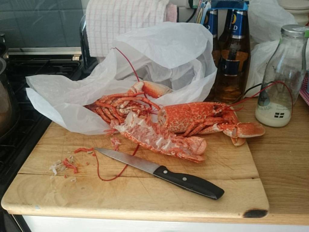 When we get there our mate borrows Andy as he’s going to give us some of his lobster and prepare our fish for us and then drop them over the the cottage later. When we get back we are all relieved and buzzing from the days adventure. Having a cold beer and a hot shower at this point in time is totally amazing. It’s not much longer until Andy and our mate come back with the fish and lobster. He doesn’t want to overstay his welcome but we get him to stop and have a few beers with us, we pan fry the fish in flour and butter and serve it with some buttered marsh samphire and it might be because we caught some of it, or because it freshly caught or made just the sense of achievement but it tastes amazing.