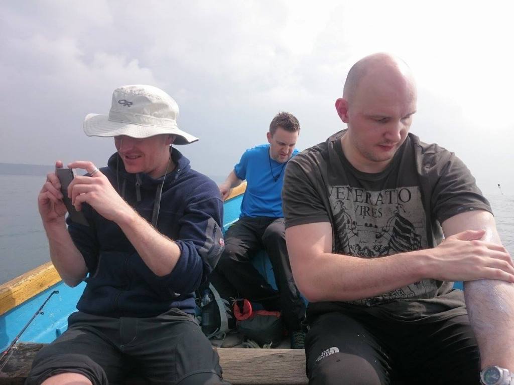We meet our fisherman friend in the morning all sporting pretty bad hangovers and he warns us not to mess about, and explains he’s taken a few visitors out before and they acted like total dickheads. We tell him not to worry as we aren’t like that. I think we were all expecting a boat moored on the quay but turns out the boat we are taking is a small wooden fishing boat. And it may be a small boat but that doesn’t mean that it doesn’t weigh a lot on land.