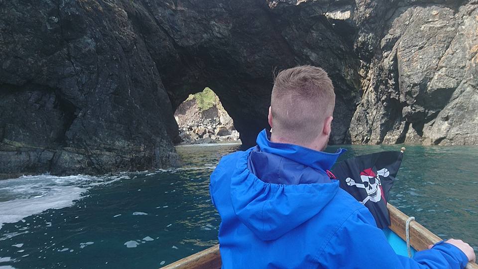 Chatting away to our fishing mate about our coasteering adventures he drives the boat around the coast to show us a huge sea stack archway, and tells us how when he was younger he jumped from the top. He’s a bit nuts like us so we can imagine him doing it. None of us are surprised when he tells us he nearly drowned (this cliff must be at least 40m high) but we are all surprised when he tells he he can’t really swim. Not sure this is really the best pastime for him everything considered!