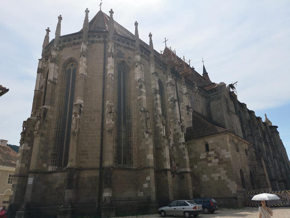 We head to the Biserica Neagră or ‘Black Church’ which is one of Brașov‘s well known landmarks, it’s not actually fully black however it’s name comes from the soot deposits and scorch marks made by a fire inside during the 1680’s. This place is impossible to miss visually as it is absolutely massive and imposing looking even ominous. I’d describe it as the size of a cathedral in fact I wouldn’t be surprised if it’s bigger than the cathedral in my home city of Birmingham. Just trying to look up at the top of this vast structure gives me a bit of a sore neck in fact.