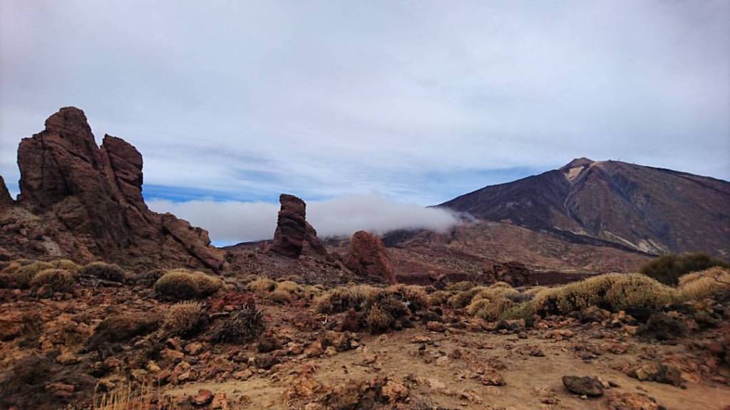 We walk up a steep trail that skirts the edge of the caldera of the summit which is emitting steam, and get that standard overpowering smell of rotten eggs you only really get with sulphur. The first thing you notice if you have never experienced is the effect of altitude. I’ve climbed many mountains and hiked and ran very long distances but I have to admit this first exposure to proper altitude makes my legs feel like lead weights. I’ve been training hard for about a year so far doing everything from beep tests to press-ups and running six and half minute miles and still I can feel the altitude. We pass the crater, inside which are a number of metering stations, likely owned and run by the Volcanic Institute of the Canary Islands.