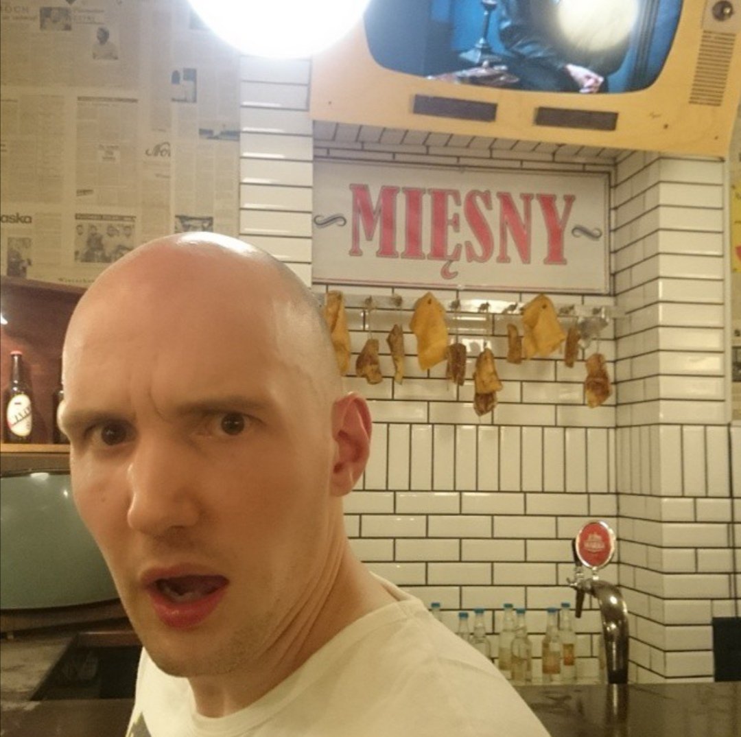 The second evening we are here we decide to go out and explore a little further and after trying pork chops with blackberry sauce (I kid you not and actually it really works) we decide to test the waters by heading out and trying a few local bars and seeing what’s going on. After visiting a few places we come across Pijalnia wódki i piwa which is actually part of a chain of bars. They are really cheap to get drinks (it’s literally 1-2 zlotys for a shot of vodka or a shooter for example) and bar snacks from and a proper little oddity if you don’t come from Poland. The reason why I say an oddity is because they have a strange sort of decor and image and to me they appear to be kitted out to look like old school butchers shops. The walls seem to be entirely papered with what looks like old newspapers and in places what I assume was plastic replica meat and chickens hang on hooks. In term’s of food they serve polish favourites like steak tartare which if you haven’t heard of it, it is literally raw mined steak with a raw egg cracked whole onto it. I vaguely recall one night out with our friend Przemek that he ordered some and said I should try it, and deciding I couldn’t actually get drunk enough to want to eat it. Now the problem with vodka shots for zloty and a decent exchange rate is two things. One is travel money companies always give you notes in stupidly large denominations and two, anybody serving you will think you are a dickhead of epic proportions if and when you try and pay them with such a note. And the reason for this is it looks like you are showing off and even if you are not it is a giant pain in the ass. Anyway having epically pissed off the smartly dressed bartender (they literally look like they are at a snooker tournament) I think we must get through about 15 shots each of various vodkas and more that one round of a horrendous shooter the call ‘Mad Dog’ which is god knows what plus a decent helping of tabasco sauce thrown in. They also sell random shooters, of which we decide to have one they call ‘mad dog’ which has tabasco in it. Matt spends the rest of the trip referring to it as zloty bar, which confuses the crap out of Polish friends.