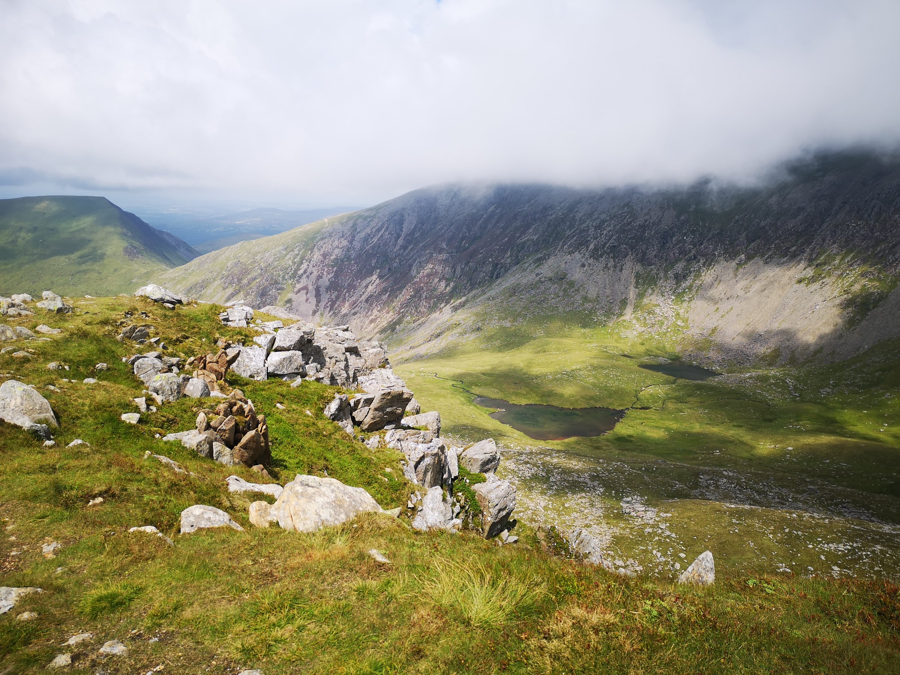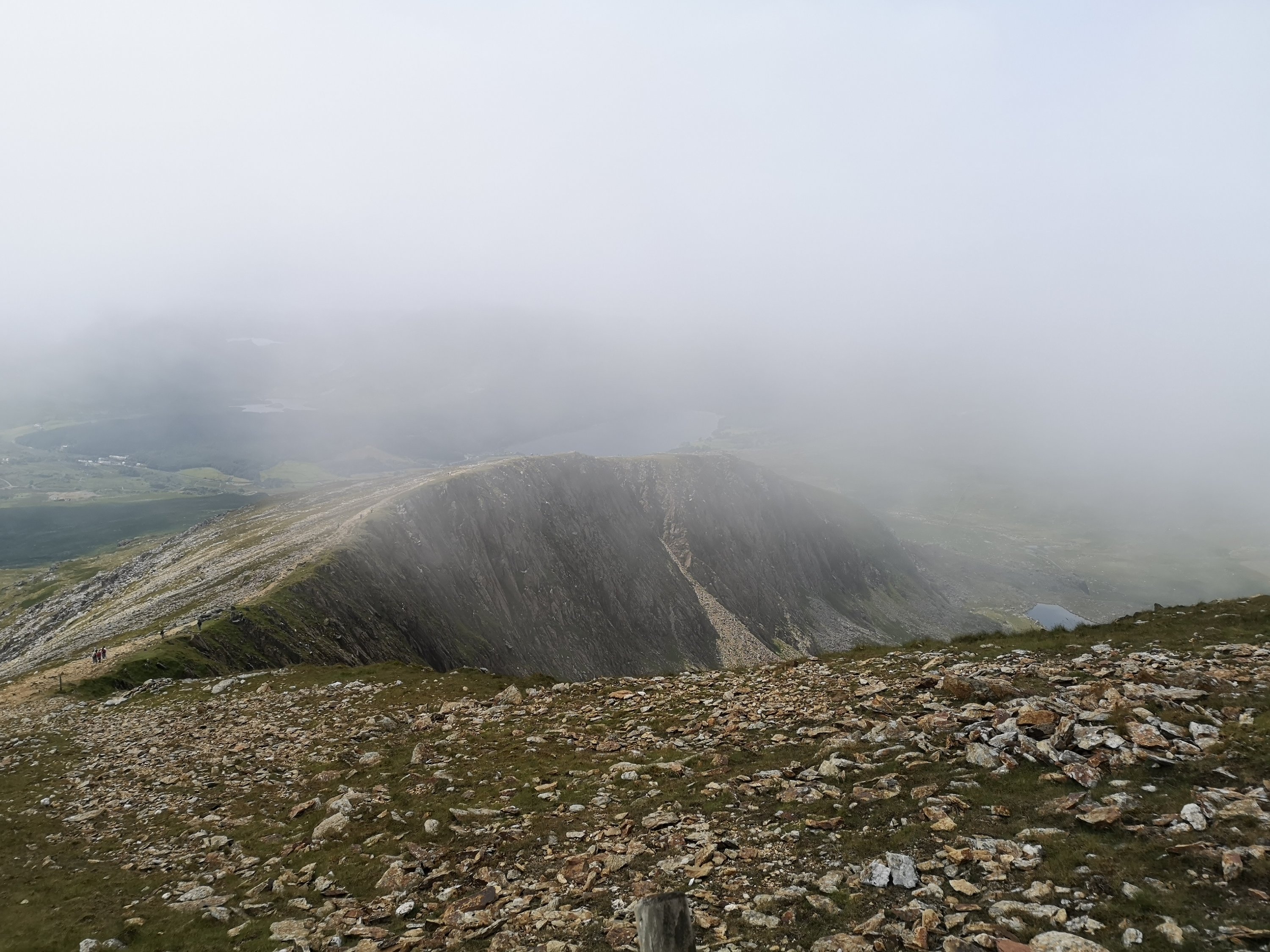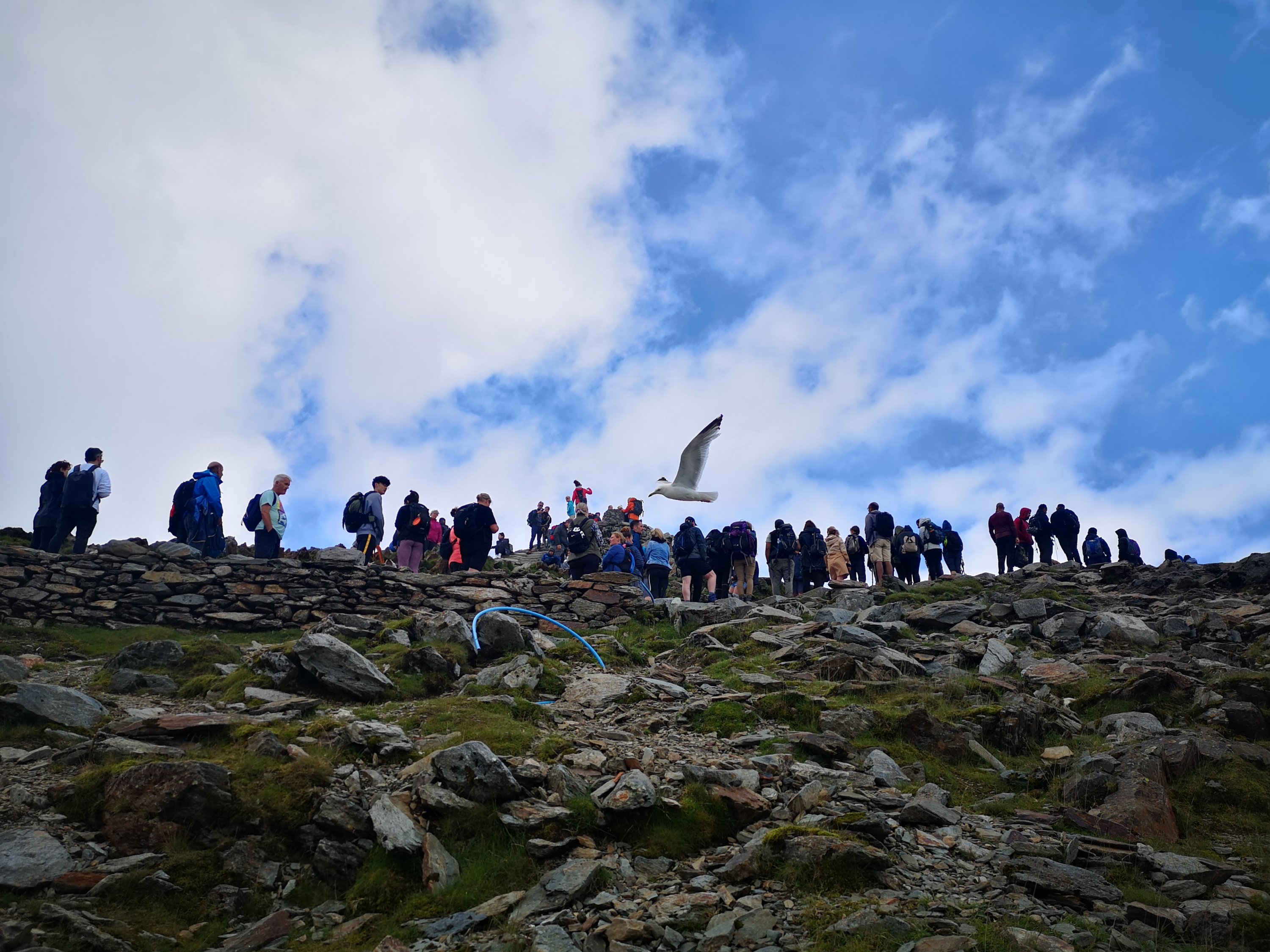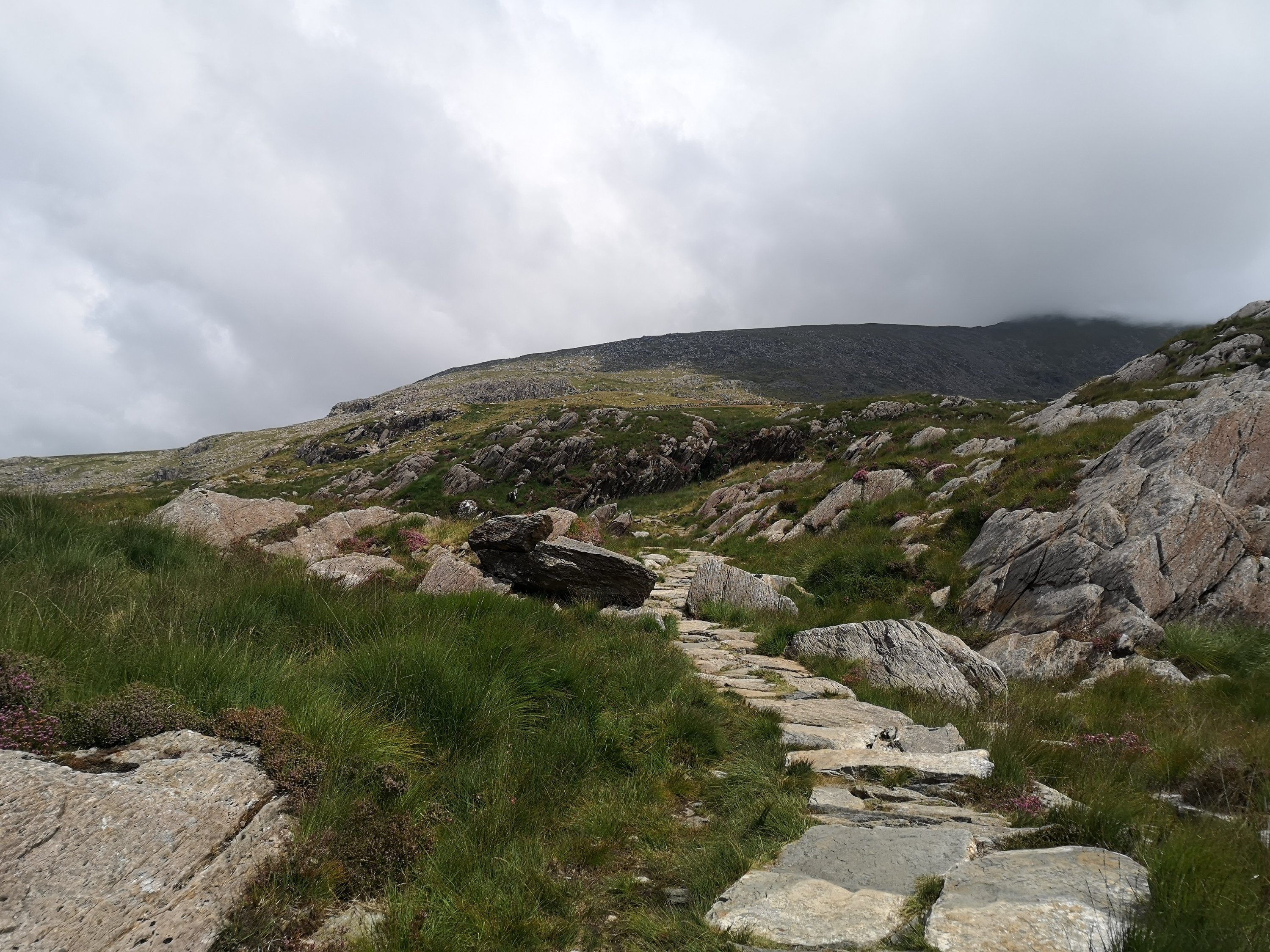 Because Snowdon is a mountain that is popular with tourists, especially due to the train that can take you from the town of Llanberis to just below the summit it’s often underestimated. Around 375,000 people hike to the summit every year, so it is a busy mountain however only around 1% require assistance from mountain rescue. However small that 1 percent may seem that’s still around 3,750 call outs a year. My personal feeling on it is that people seem to quickly forget that just because in some ways it’s more accessible that it’s still the second highest mountain in the UK. Also it’s still a mountain and it still has plenty of hazards, which not everyone seems to consider. We see plenty of people in footwear and clothing that if the weather were to suddenly change as it has want to do on mountains they would quickly find themselves in trouble. The most notorious area of Snowdonia is Crib Goch ridge, a place where many people find themselves in trouble and a lot of tourists have actually died. There’s also a strange mentality of ‘well my mate did it in a pair of trainers and no waterproof jacket so i’ll be fine’. Getting away with doing something badly and dangerously does not make it the right approach, it just means you didn’t fall foul of natural selection this time round. These days you are more likely to bump into a herd of unicorns than find people with much common sense. Standing at 1085m high, some people refer to the place as Mount Snowdon however the name Snowdon actually means ‘snow hill / snow mountain’ so that doesn’t really work because you are effectively calling it ‘Mount Snow Mountain’ . It’s welsh name is Yr Wyddfa Fawr, which translates to the Great Tomb or Great Throne in English. It has also been previously known as Carnedd y Cawr, or the Cairn of the Giant which feeds into one of the many myths and legends associated with Snowdon. We have plenty of stories of King Arthur in the UK and it’s said that Arthur killed the giant known as Rhitta here, a giant known for killing his enemies and sewing himself a cape made of the fallen mens beards. Which grimness aside sounds like he itchiest piece of clothing ever. It is said after Arthur killed him his men covered Rhittas corpse with large stones on the top of the mountain, which explains the ‘Cairn Of The Giant’ title. The views on our ascent as we progress along the ridge lines in this perfect weather are actually some of the most breathtaking I’ve seen in this area, and we all wonder out loud why we have never used this route before?