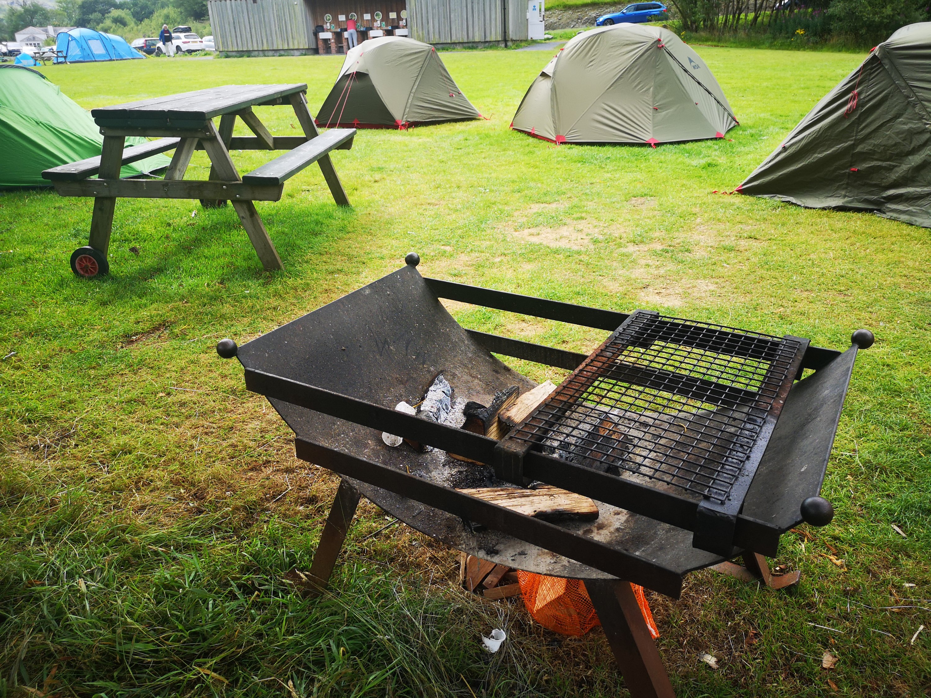 We pull up outside the Cwellyn Arms pub which is the place that own the campsite, it’s a traditional inn that looks like it has plenty of character. As we get our tent tags we also pick up a big back of logs and tinder for the fire pit. We drive to the campsite and it’s really well placed right next to the shores of Llyn Cwellyn the pitches are spacious and we notice the fire pit has a push over grill, so the camp stoves are probably not going to have to come out much this weekend. We all get our tents out of the cars and set up our little camp, I get the fire pit on the go and we use the stream next to us that’s feeding the lake to chill our beer. Richards brought what seems to amount to half a butchers shop worth of meat with him, which must be habit with him being a weightlifter so full on BBQ later, and who doesn’t like a BBQ?