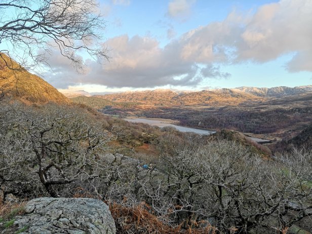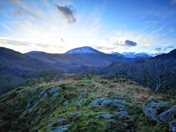 I’d heard about Dinas Emrys a few times and I think initially I’d assumed that it would be a bit of a drive to get to it, but one day I got a map out to plan a mountain day and there it was, about a fifteen minute drive from the front door and as I’m still recovering from foot and knee issues and just trying to get my ass out the door during a long miserable January I managed to drag my carcass out from under the black dog and out of addictive laziness and head out of the door in the early afternoon. Being winter getting out of here at 2:30 might sounds like it gives me plenty of time but with the sun setting fully at 4:30 that didn’t give me much time at all to get myself onto Dinas Emrys in time for what photographers call the ‘golden hour’ which is the time photographers take advantage of the almost magical effect of the almost set sun softening and giving a warm glow and atmosphere to photographs. And considering the myths and history of Dinas Emrys this seemed like a perfect time to take a few photographs of the spot. And also the perfect excuse for me not to really bother moving until later afternoon apparently.