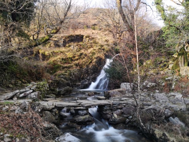 Then it’s through some ancient looking woodland which in this cold winter looks about as gnarled and haunted as you could possibly get. Before coming upon an even more impressive waterfall.