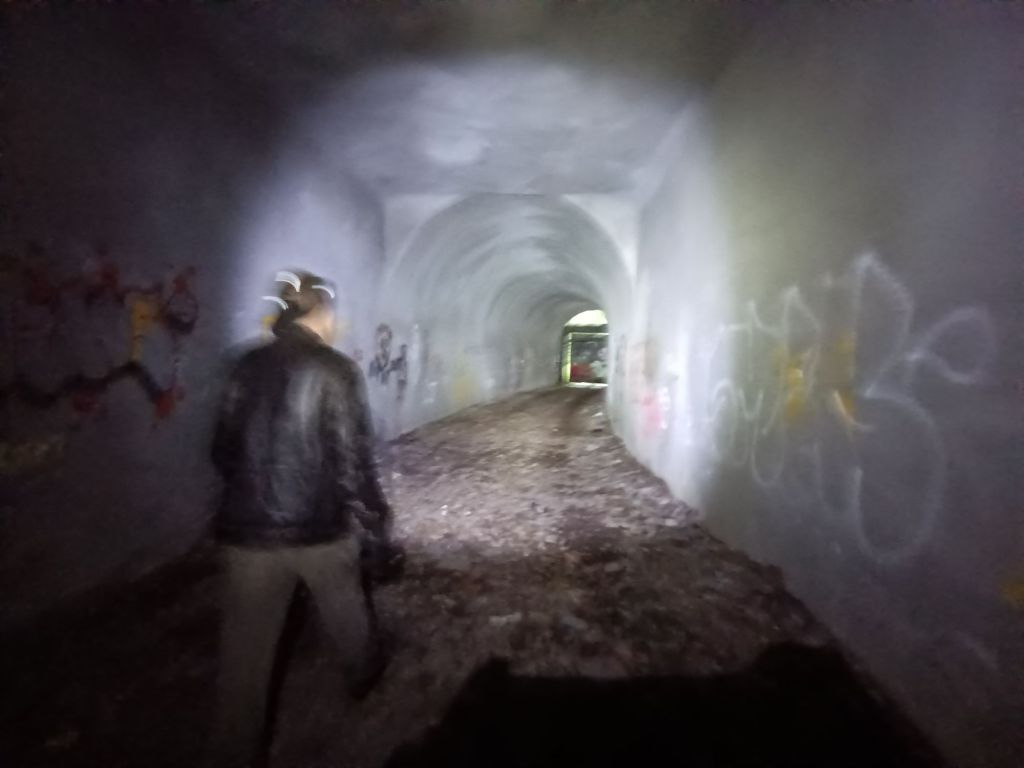 On the other side of the magic yellow door of castration there’s a rail track through the rock that looks like what I’d imagine to be the tunnel to hell in a Clive Barker novel. All It’s missing is some deformed cenobites attached to the metal things pegged into the wall bleeding all over the shop. This is one of the rail tracks that would have brought the ammunition into the facility.