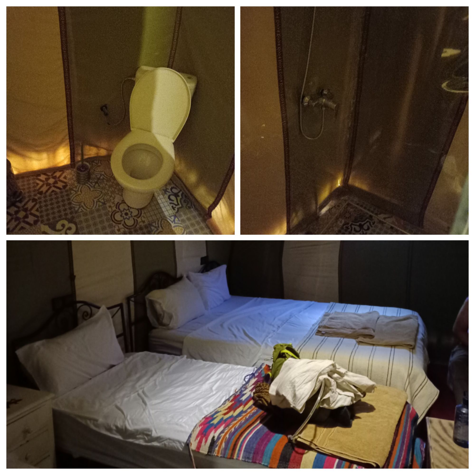 When we get back we have just been left to our own devices there’s not a even a campfire, Rob is talking to a young Irish woman who’s apparently just been stranded here without here original tour party who were placed in another camp. When she got here she tells us there were three male camp staff in her tent which sounds awkward and strange so for obvious reasons being a lone traveller she doesn’t feel safe. We say she is welcome to join us if she feels better though she befriends the Spanish couple in their tent, which may be the best idea. After a bit of chatting and wishing I’d brought a big bottle of whiskey from the duty free on the way here we decide to turn in, hang all our boots off the ground by the laces from the coat rack just in case there’s any scorpions around and try and get some sleep. Trying to get some rest is difficult even with my earplugs in, the sound of distant drums surround us like we are trapped in Jumanji or something. Apparently the other camps are having a party we are not invited to and as cool as the atmosphere from the drumming it doesn’t help us sleep.