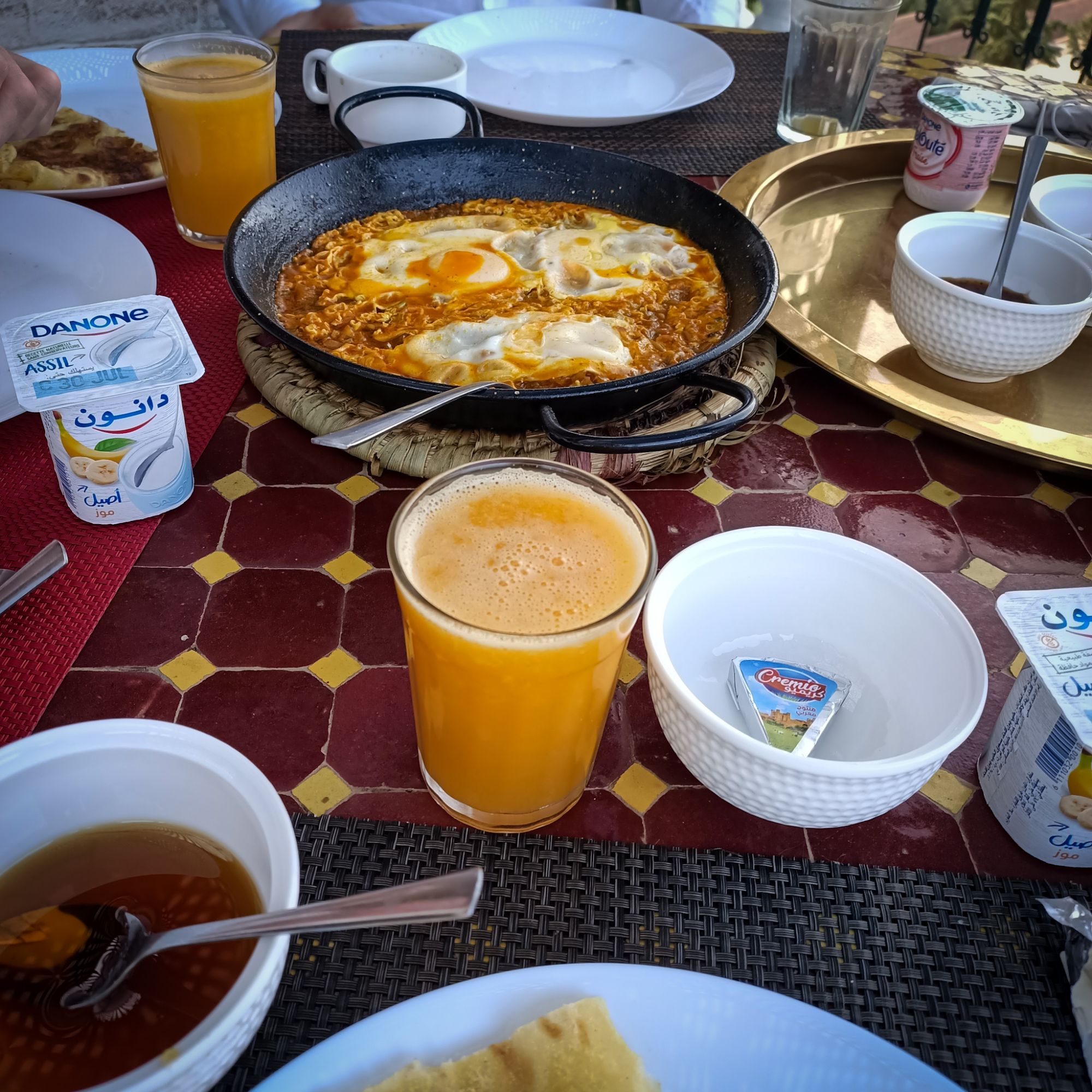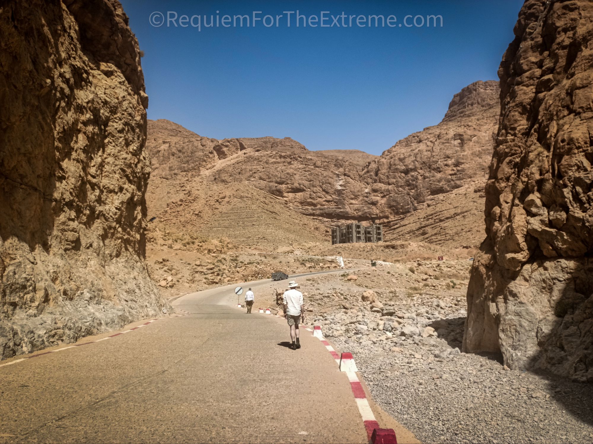 The morning after Trekking Toubkal we get up early for breakfast noticing our legs have seized up , mine feel like they someone has been punching them all night while I slept. Known medically as ‘DOMS’ or ‘Delayed Onset Muscle Soreness’ this fun gift from the mountain is short term muscle damage brought on by intense exercise. After I manage to shuffle down the small set of steps outside of our room like a 90 year old man I join the guys from breakfast which is quite simple the highlight being we no longer have to avoid caffeine now we are not at high altitude. When we are done, we finish packing and on go our desert boots, linen shirts, hats and shemaghs. We check out of the hotel to meet our driver outside and I wobble over to the car like a man with two wooden legs. Mohamed waves us off and vanishes in the rear view as we drive out of Imlil bound for Dades and later the Sahara.