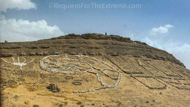 During one of our many pee stops we pull up in a small town for Andy sort himself out and having the van doors open briefly turns out to be a mistake as almost instantly a kid magically appears in front of me trying to sell me jars to fill with Saharan Sand. I’m not in the market for any jars and he leaves only to be replaced by another kid who actually tries to sell me sand. Thankfully Andy re-appears and we start driving again back into the wilderness until out of the haze appear roadside stalls and desert outcrops with rocks arranged into words declaring ‘fossil, mineral shop’ making sure you know you can spent yet more Dihram. But this time on rocks. Which are technically free.