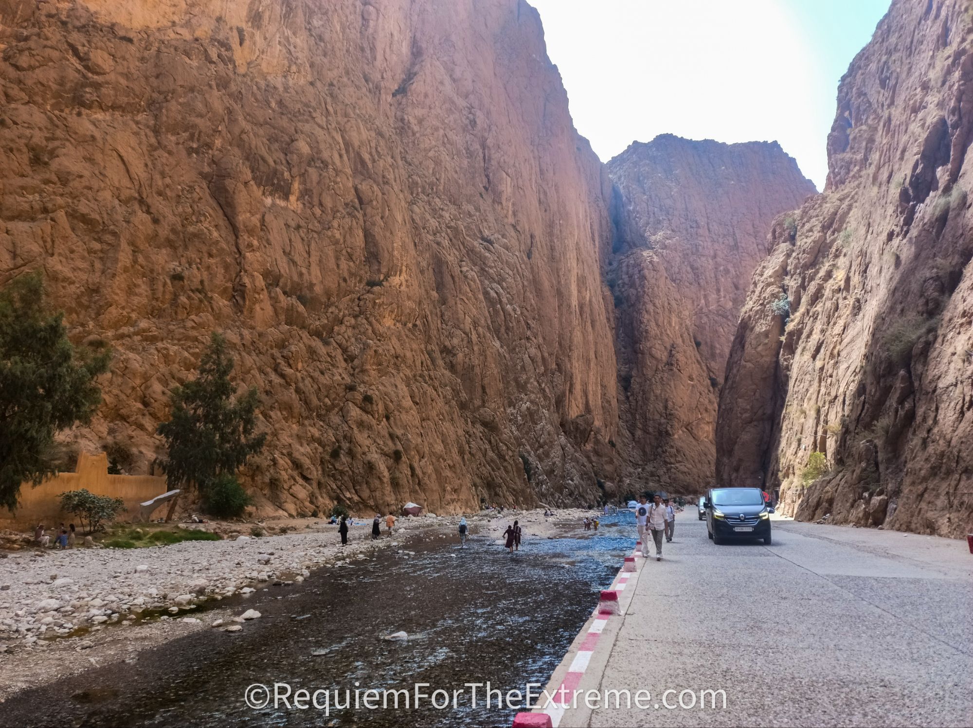 While driving down what is known as ‘the road of a thousand kasbahs’ it surprisingly starts to rain in one of the driest places on earth during peak summer. It’s unusual but not unheard of for this to happen being as we are on the edge of the Sahara rather than in the middle of it. The rain gets increasingly heavy, clattering loudly on the roof of the car and when it eventually stops we find ourselves heaving up the steep roads into the Dades gorges area.