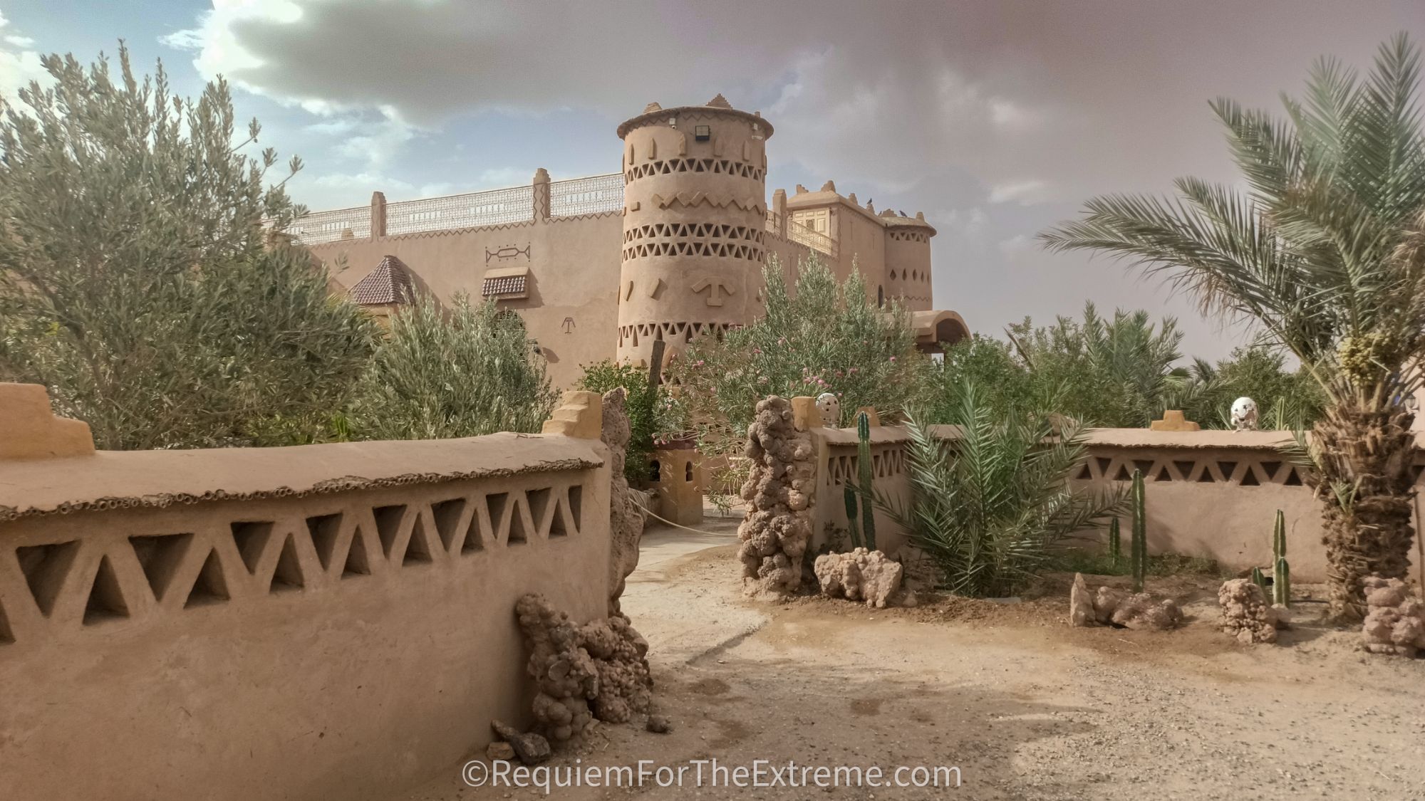 Eventually we find ourselves on a road above a seemingly abandoned village and the driver suggests we stop for a break and take some pictures. Many old and abandoned villages in this area have been used for filming locations, this may even be one of them and you can see why. Despite my best efforts I’ve not managed to identify which village this one is, so if you know feel free to drop a message in the blog comments! Brief exposure to the increasing heat makes us glad to get back to the aircon of the taxi, and we drive now to the the nearby ‘Hollywood Of Africa’ Hotel and Restaurant I assume that it’s so called due to the amount of film crews that pass through this area. After some great food and a cold beer the hotel manager and driver offer to have us guided around the local area and we think on this deciding that we are all too tired, what’s more at this point I am really struggling to walk. I have to use Google translate to type this into Arabic and explain we just want to get to the hotel in Dades and rest before the desert