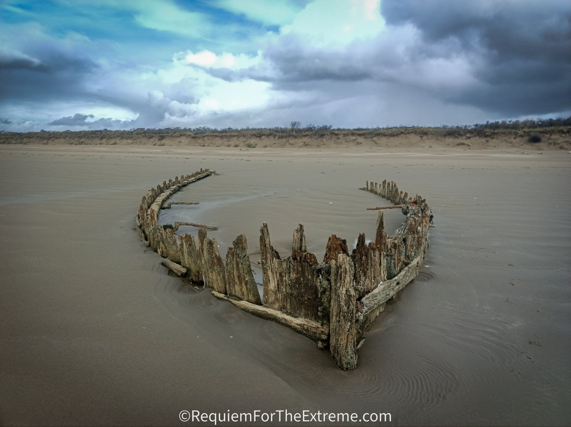 The tide is still quite far out so I decide to go and hunt for any exposed shipwrecks. The first corpse of a ship I come across is the S.V Paul, it’s slowly rotting timbers poking out of the sand like the broken teeth of some giant marine animal. The Paul was wrecked here on October 30th 1925 on it’s way from Halifax, Nova Scotia bound for Dublin when it’s sails were destroyed by gale force winds in the Bristol Channel. It’s said many houses in this area still contain timber scavenged from the wreck. There were no recorded fatalities from the wrecking of the Paul however the waters around here have claimed many other seafarers lives, there are records in fact of ships being wrecked in the area of Cefn Sidan and the Burry estuary since as far back as 1668. There are 182 wrecks recorded in this area which is a staggering amount and at least 304 fatalities accounted for before considering the eight ships who lost all of their crew. It’s estimated that there may be anywhere between 300 to 800 ships wrecked here since Roman times some of which would now be buried further inland due to changes in the landscape and coastline.